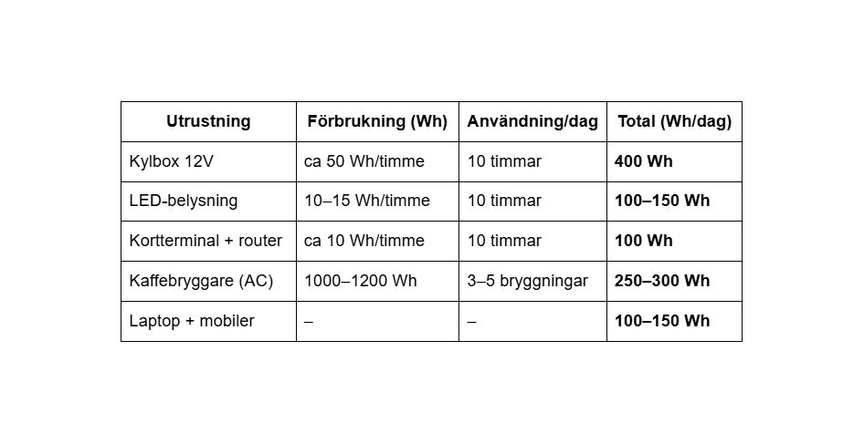 Total daglig förbrukning: 900–1100 Wh